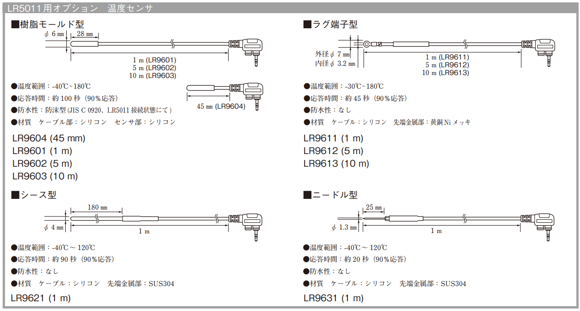 LR5011用温度センサ例(カタログより抜粋)