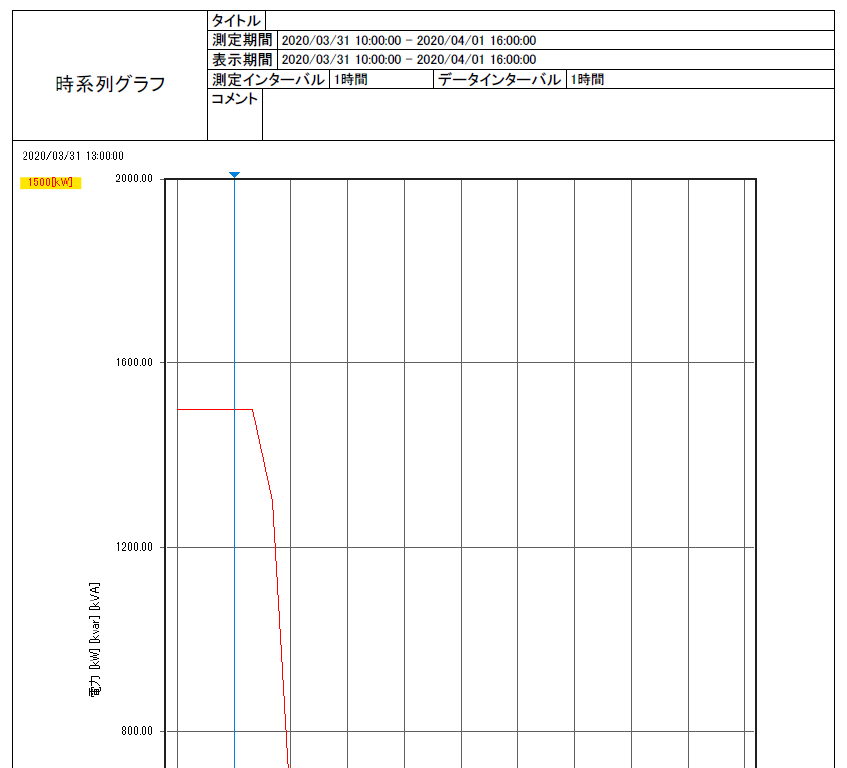 クランプオンパワーロガーPW3360、PW3365で保存したデータをパワーロガービューワSF1001で時系列グラフで表示、印刷したところ左上に測定値が印刷されました。これは何でしょうか?