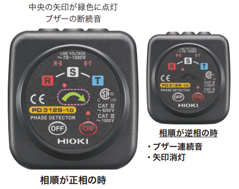 PD3129は正相の場合、中央の矢印ランプが点灯し、工事報告用の写真撮影が可能なため、より便利になりました。