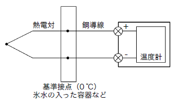 【TC:0℃】 RJセンサが無くても熱起電力は発生できますが、氷水や氷点魔法瓶等を使い零接点補償する必要があります。(0℃基準の熱起電力を発生)