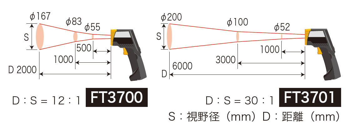 放射温度計FT3700およびFT3701のカタログには、それぞれ測定距離と視野径の記載があります。それを超えた場合、測定できないのでしょうか?