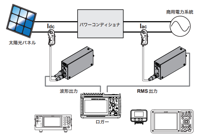 電流センサ用センサユニットは入力インピーダンスは1MΩ以上の測定器(オシロスコープなど)に接続してご使用ください。入力インピーダンスが低いと正確に測定できません。