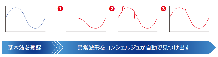 お客様に設定していただいた基本波形の特徴を自動で算出し、測定したすべてのデータから類似性の低い波形を異常波形として順に探し出します。測定した波形をスクロールしながら目視で確認し、異常を探すという時間を大幅に短縮することが可能です。また、どのような異常が観測されるか予測できず、測定前のトリガ設定が困難な場合に有効です。