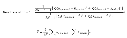ここで、Rs,means,i Xmeans,i は計算のインピーダンス、Tは測定インピーダンスの平均値、Nは測定点数、pは電気等価回路(EEC)のパラメータの数を表します。